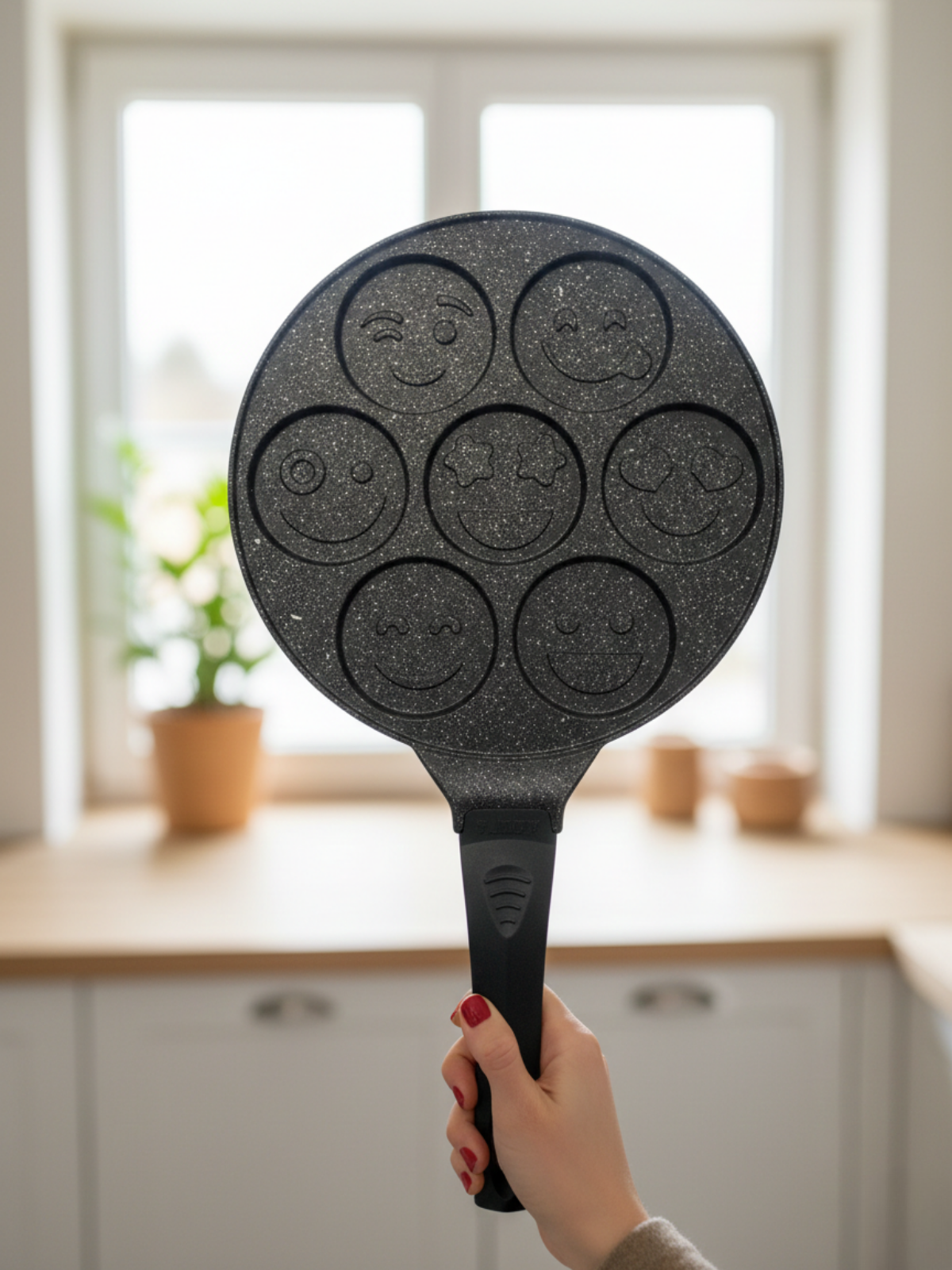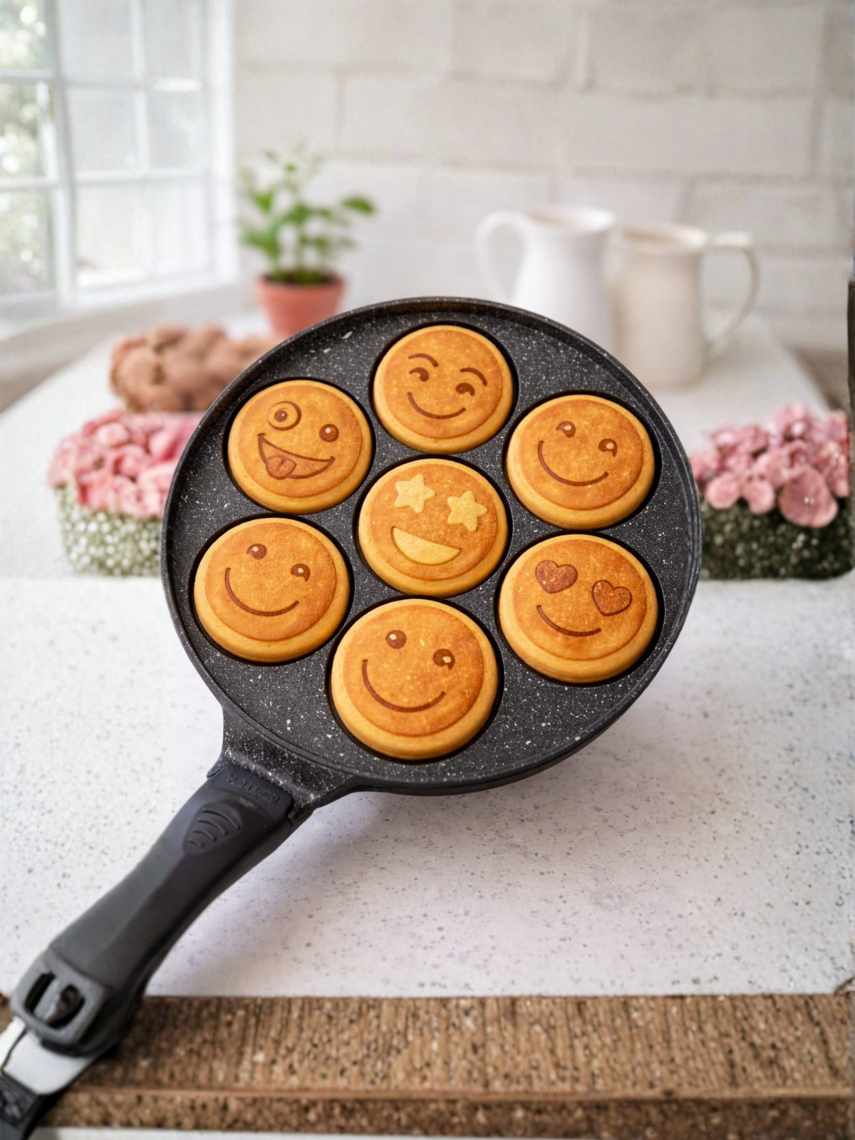 Add fun to your mornings with this 7-piece nonstick granite cast iron waffle and pancake pan set. Designed with playful emoji shapes, this versatile cast iron waffle pan set helps you create eye-catching breakfasts that both kids and adults will love.