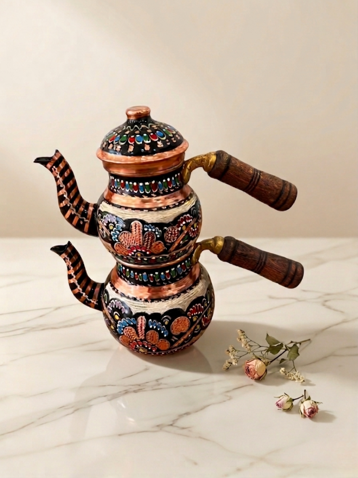 Discover the beauty of traditional Turkish craftsmanship with our Erzincan Handcrafted Copper Teapot for 2. Perfectly designed for daily use and decorative purposes, this teapot brings both style and functionality to your kitchen. Ideal for Turkish tea lovers, it’s a unique addition to any home.