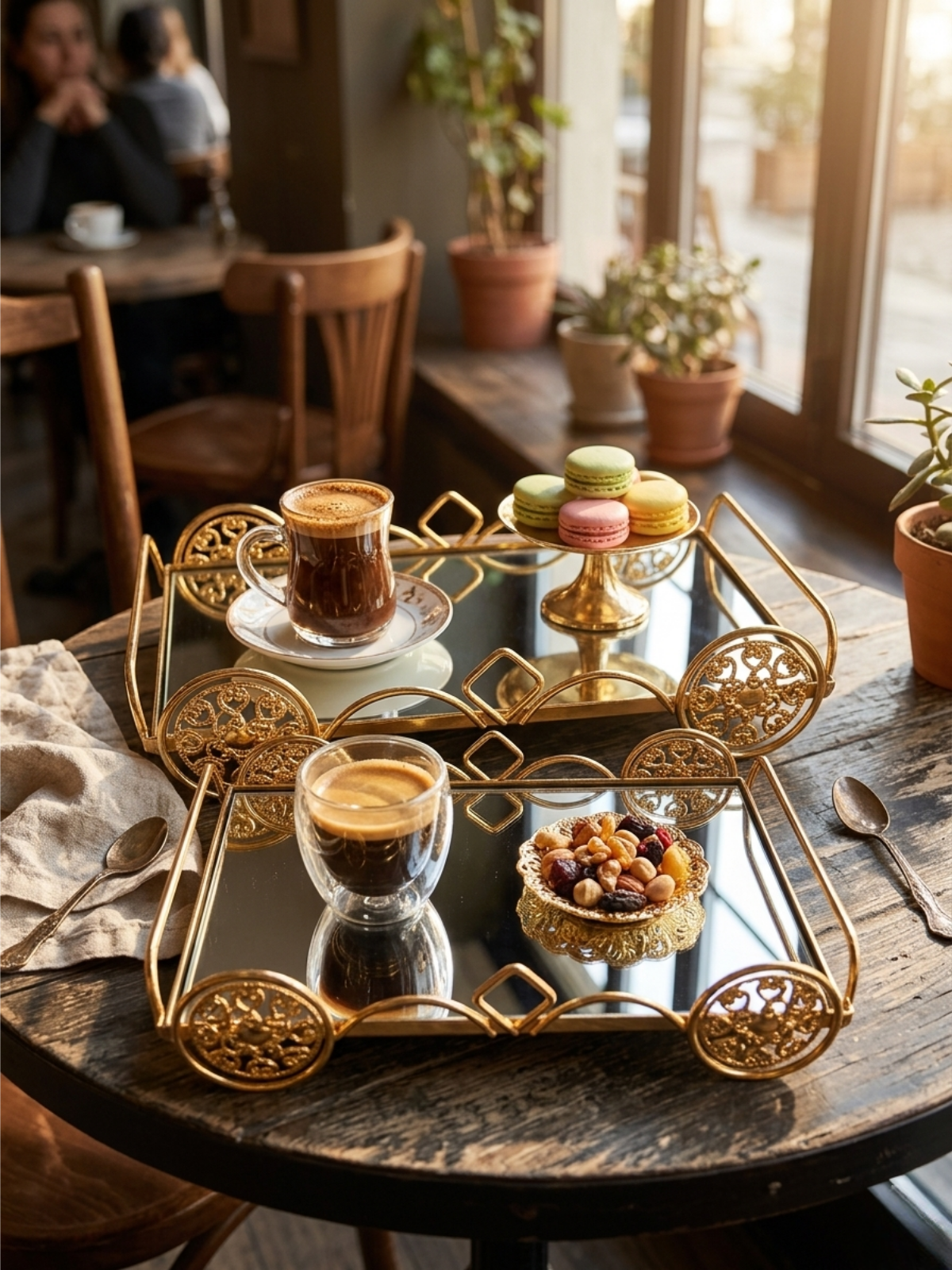 These versatile trays are not only practical but also decorative. Use them as ottoman trays, centerpiece trays, or engagement party serving pieces. The mirrored surface is easy to clean and maintains a luxurious golden finish, turning everyday moments into stylish and memorable experiences.
