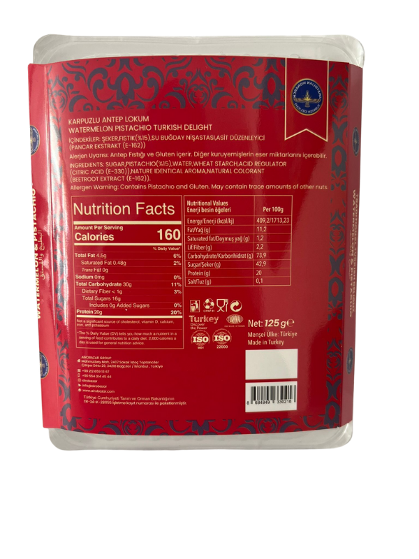 Be the first to review “Handmade Watermelon Pistachio Turkish Delight 125g – Natural Fruit Lokum – Authentic Turkish Sweet – Gourmet Candy Gift – No Additives” Cancel reply