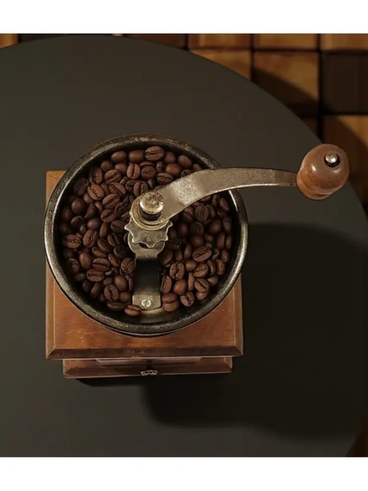 The wooden base includes a convenient drawer to collect and store freshly ground coffee, making measurement and transfer simple and mess-free.