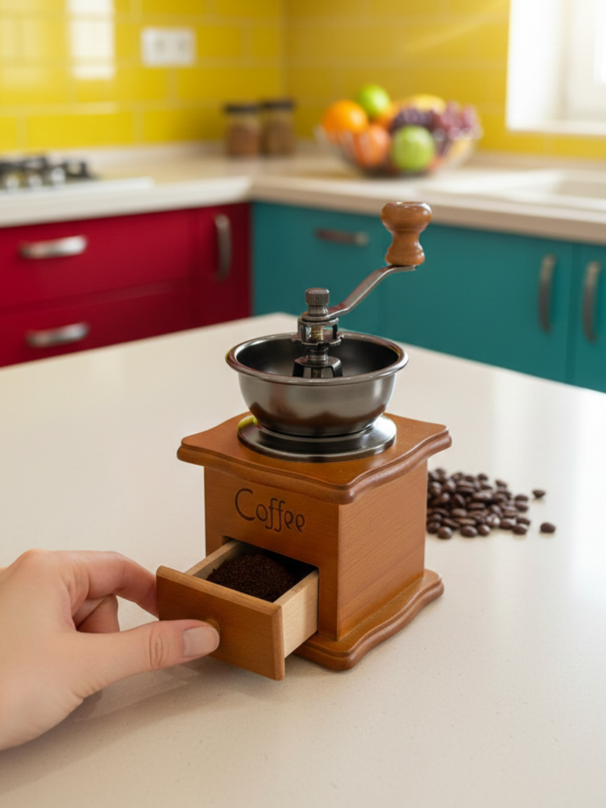 Enjoy the authentic ritual of manual coffee grinding with this Manual Coffee Grinder with Wooden Base. Its vintage design adds charm to any kitchen while providing practical functionality for daily use.