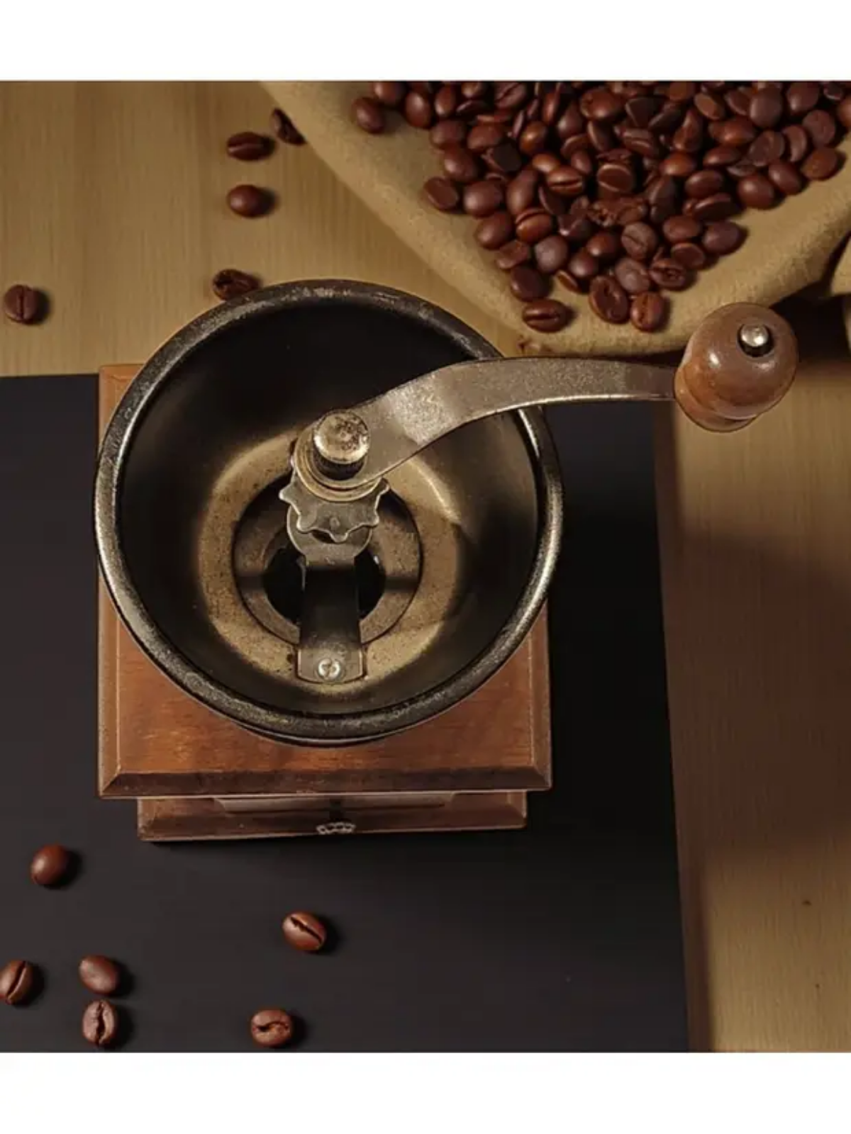 Manual Coffee Grinder with Wooden Base – Hand Crank Burr Mill, 20 cm