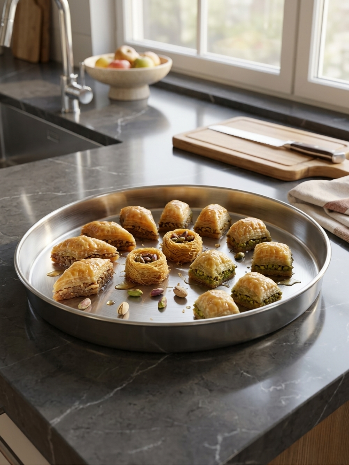 The high-quality material provides even heat distribution, allowing you to achieve perfectly baked baklava, pastries, and desserts without burning or uneven cooking. Ideal for both traditional and modern recipes.