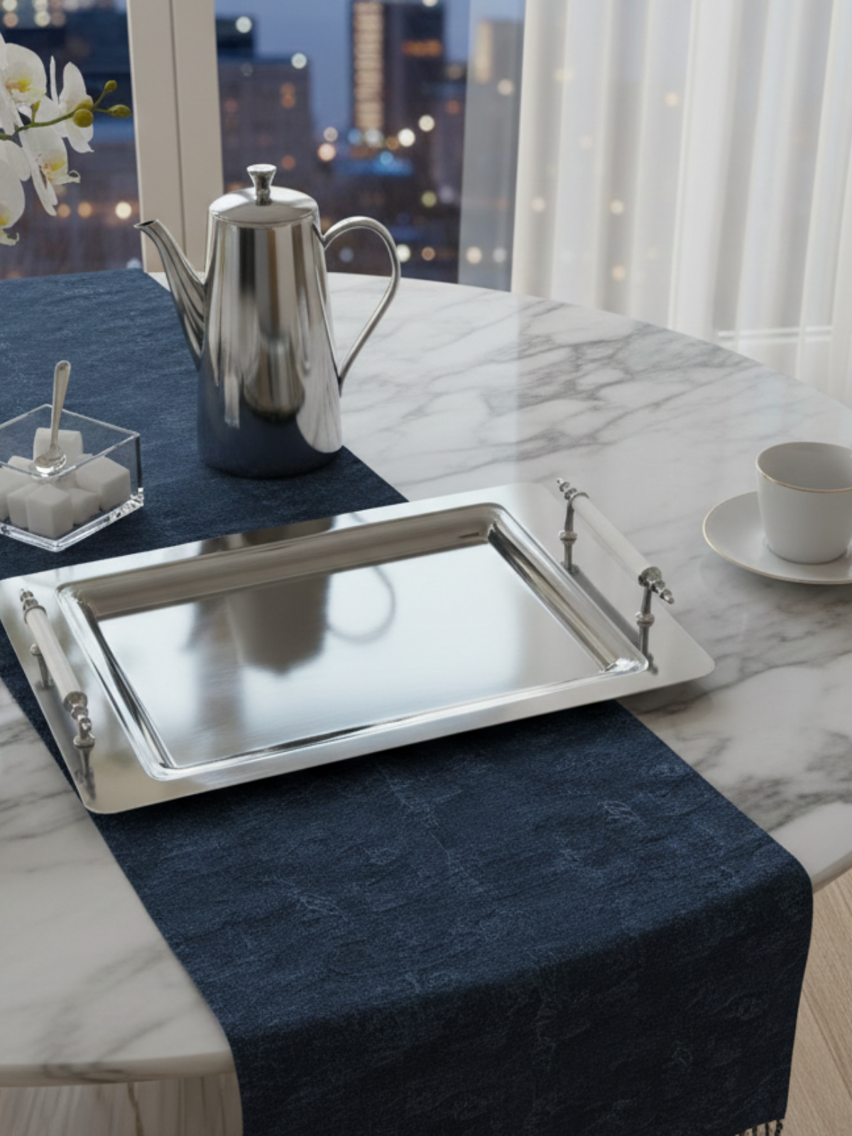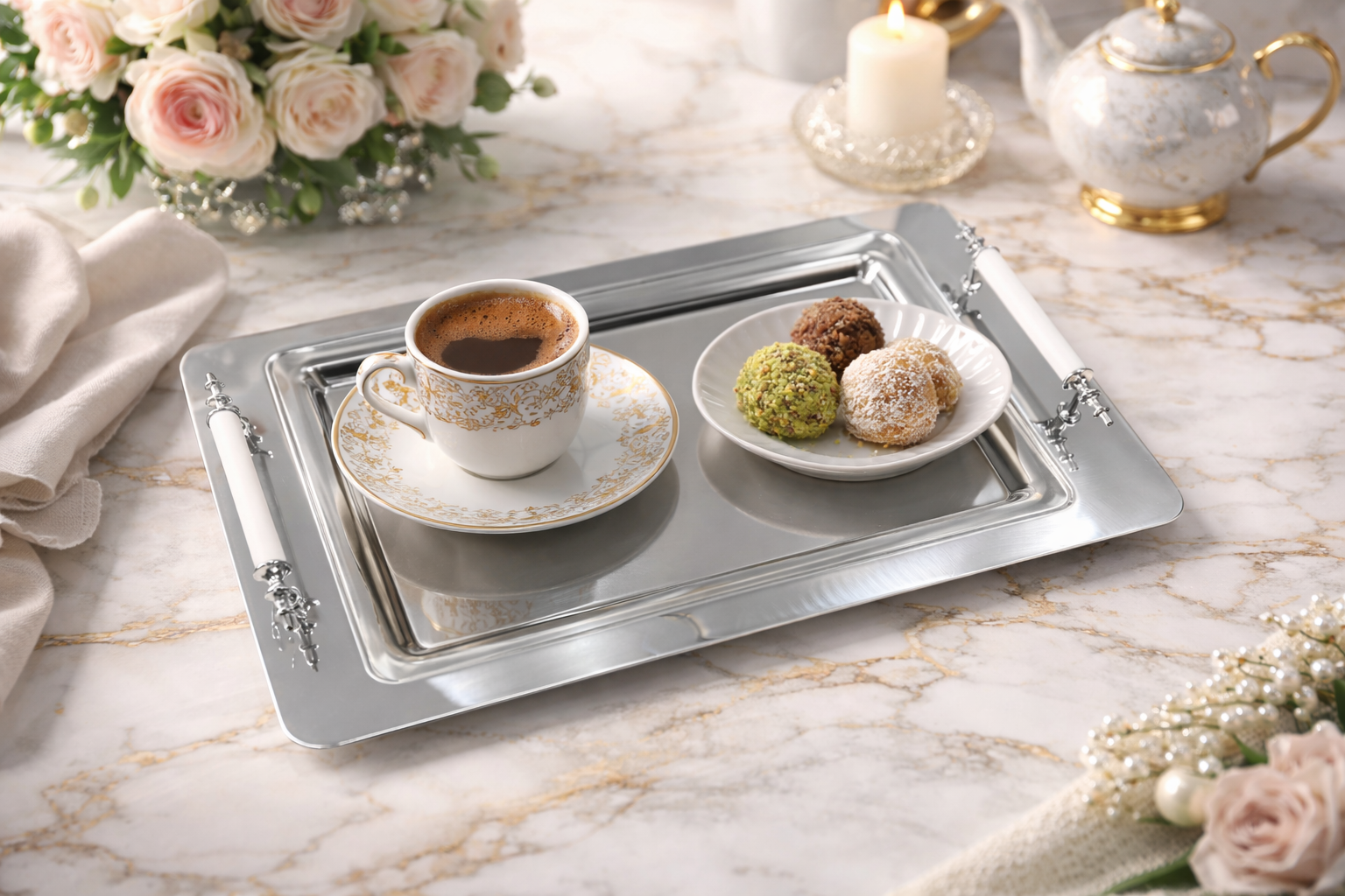 Be the first to review “Stainless Steel Serving Tray for 4, White Handle, Tea and Coffee Tray, Metal Serving Platter for Home” Cancel reply
