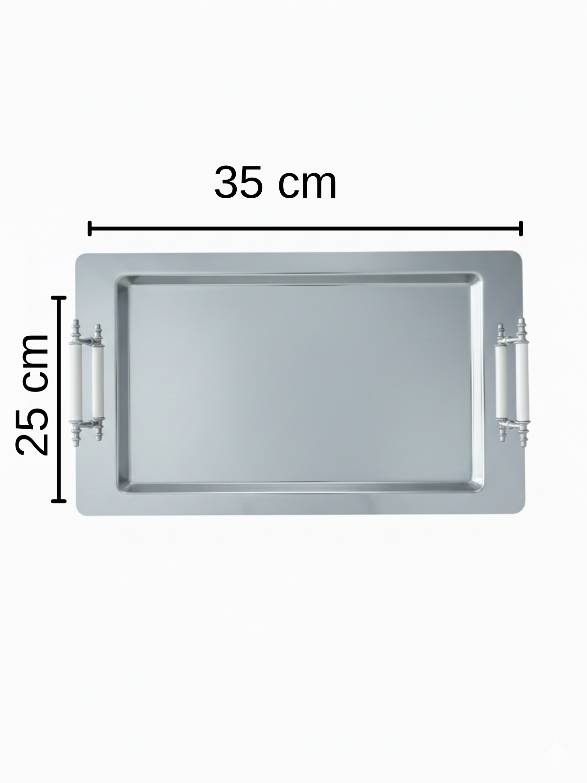 The white handle provides a comfortable grip for easy carrying and adds a modern touch to the tray’s sleek metal design.