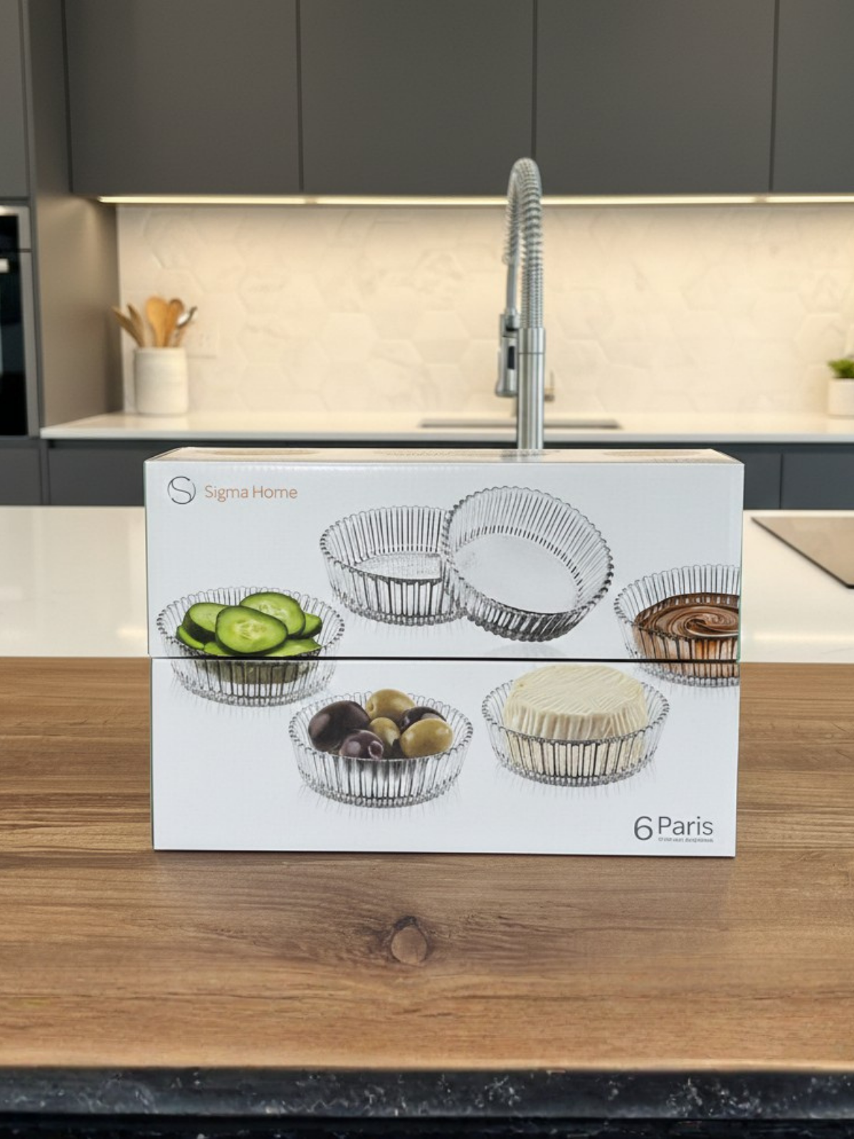 6’lı Cam Kase Seti – Şeffaf Kahvaltılık ve Çerezlik Sunum Kasesi