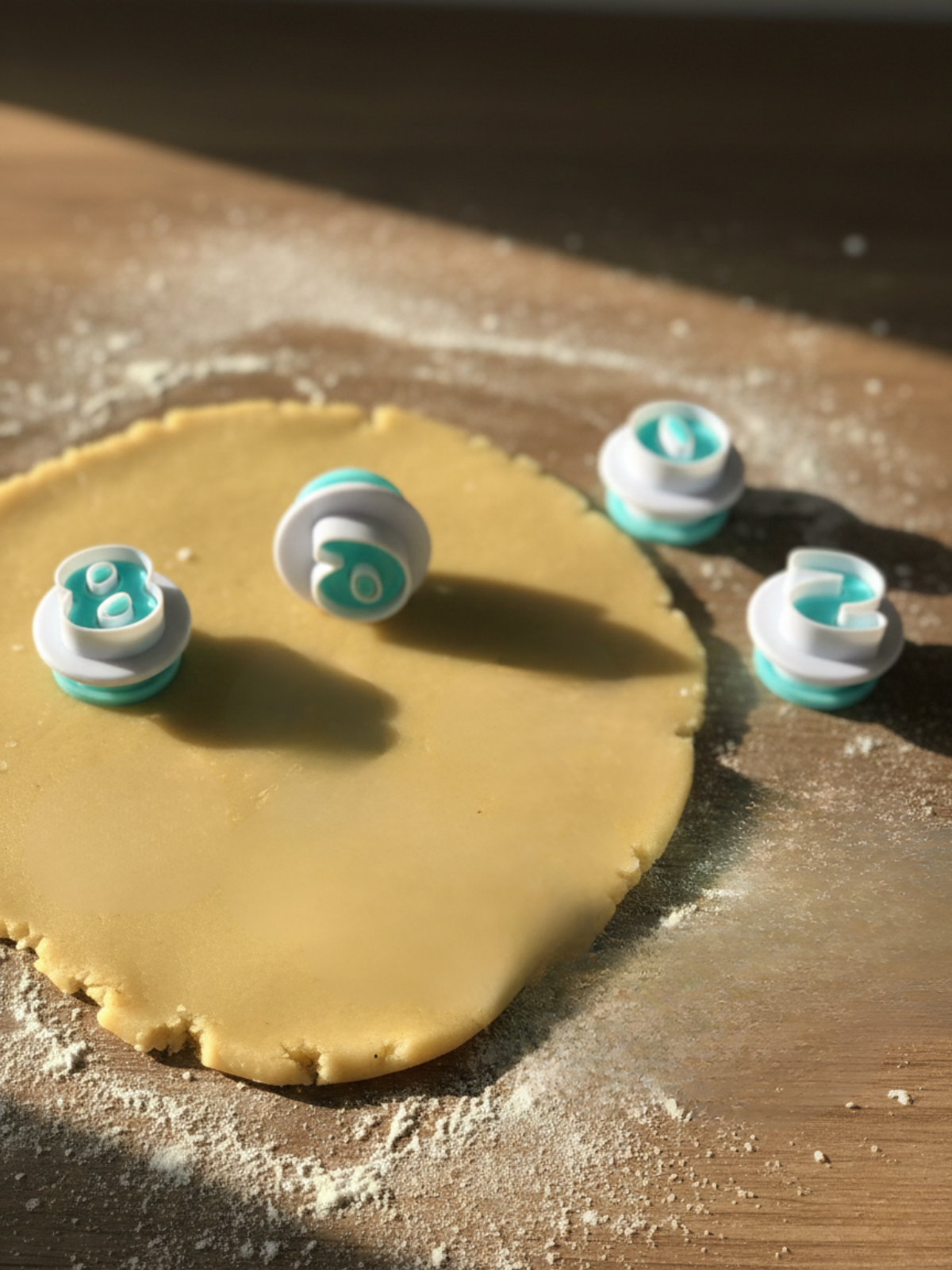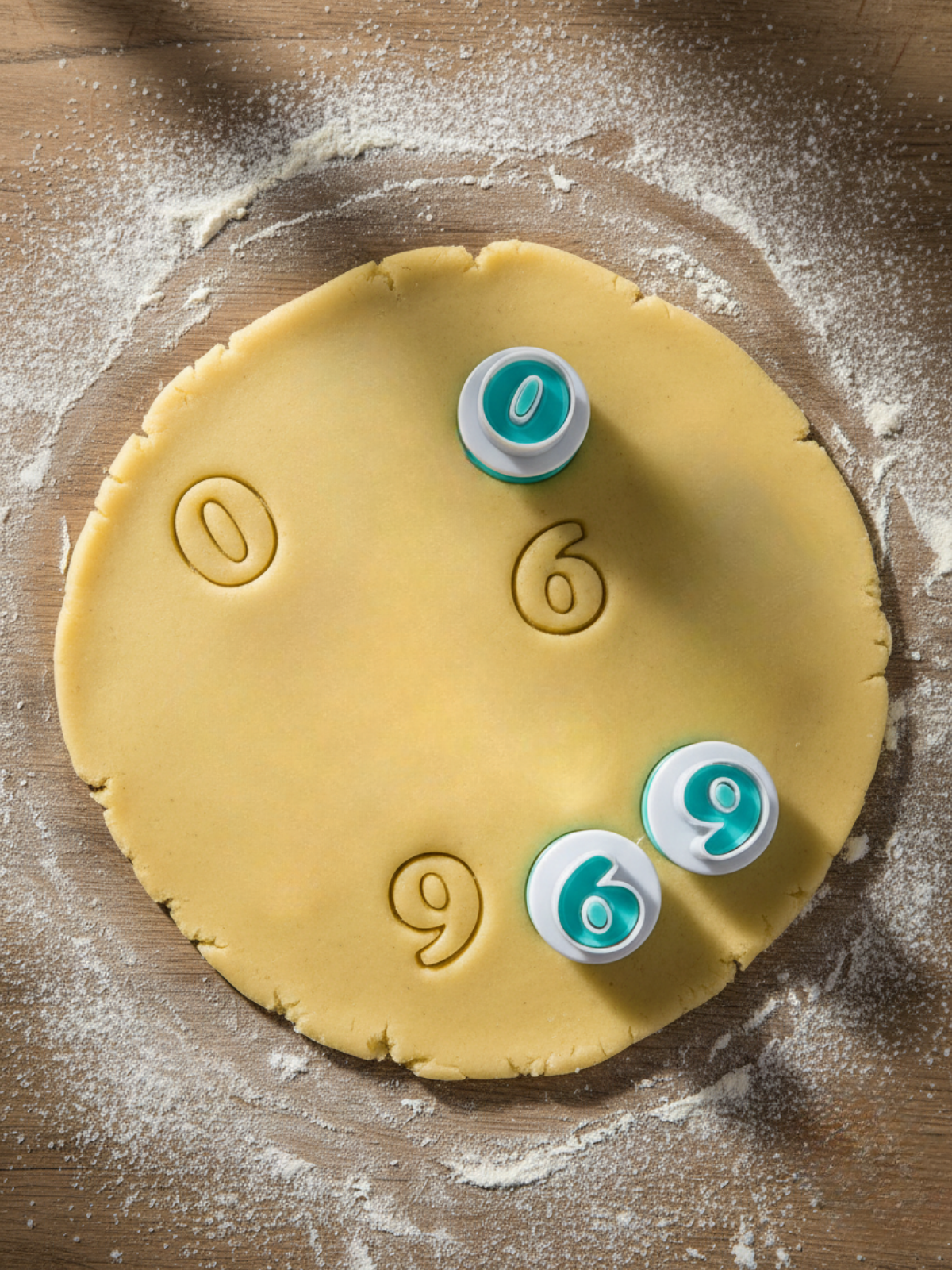 Her kesici, beyaz dış halka ve turkuaz rakam damgasına sahiptir. Bu tasarım sayesinde kurabiye hamuru, şeker hamuru, turta tabanı ve diğer hamur malzemelerinde net ve belirgin rakamlar oluşturmak çok kolaydır.
