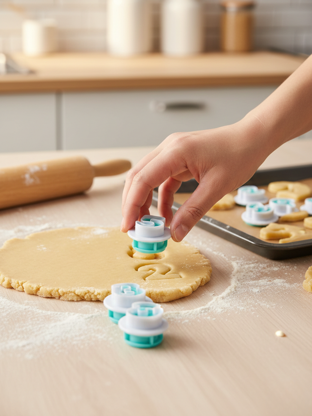 Uzun ömürlü kullanım için tasarlanmış bu basmalı rakam kesiciler, hamura veya şeker hamuruna kolayca bastırılarak temiz ve hassas rakamlar elde etmenizi sağlar. Evde ve profesyonel mutfaklarda güvenle kullanılabilir.