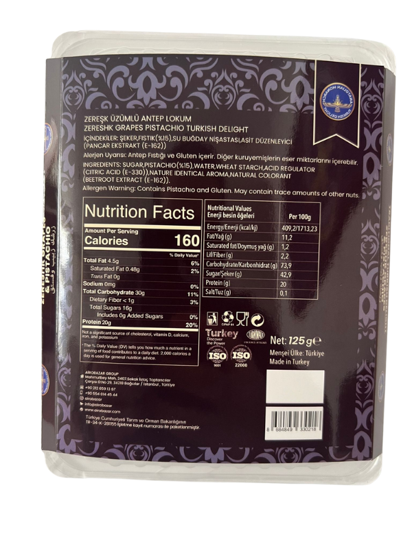Zereşk Antep Fıstıklı Lokum 125 gr – Türk Lokumu Hediyelik Tatlı